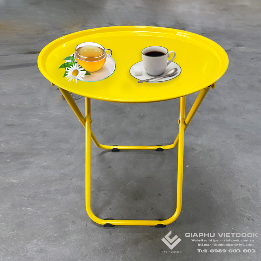 Bàn cafe tròn có kích thước nhỏ dễ gấp gọn, được sơn tĩnh điện, thiết kế dạng khay an toàn khi sử dụng và di chuyển. Sản phẩm phù hợp với mọi không gian và mục đích sử dụng, dễ dàng mang đi picnic, dã ngoại hay để ở sân vườn, logia.