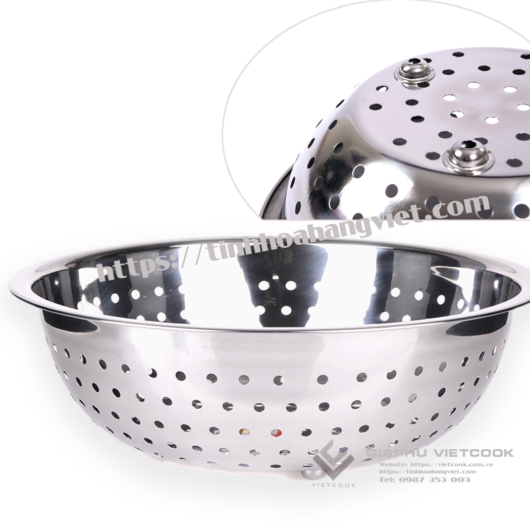 Rổ inox VIETCOOK với lỗ dập tròn dùng để đựng rau, củ, quả và các đồ có kích thước to hơn lỗ rổ, dùng để úp bát, đĩa rất tiện lợi.